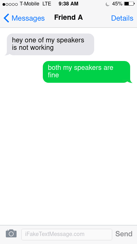 You go back to the store and wait in the line for the customer service department. You get to the front of the line and explain your problem. The technician whirls the speaker around looking for damage. The technician plugs the speaker in to see if they power on. The technician goes into the back room for a while and comes back and says