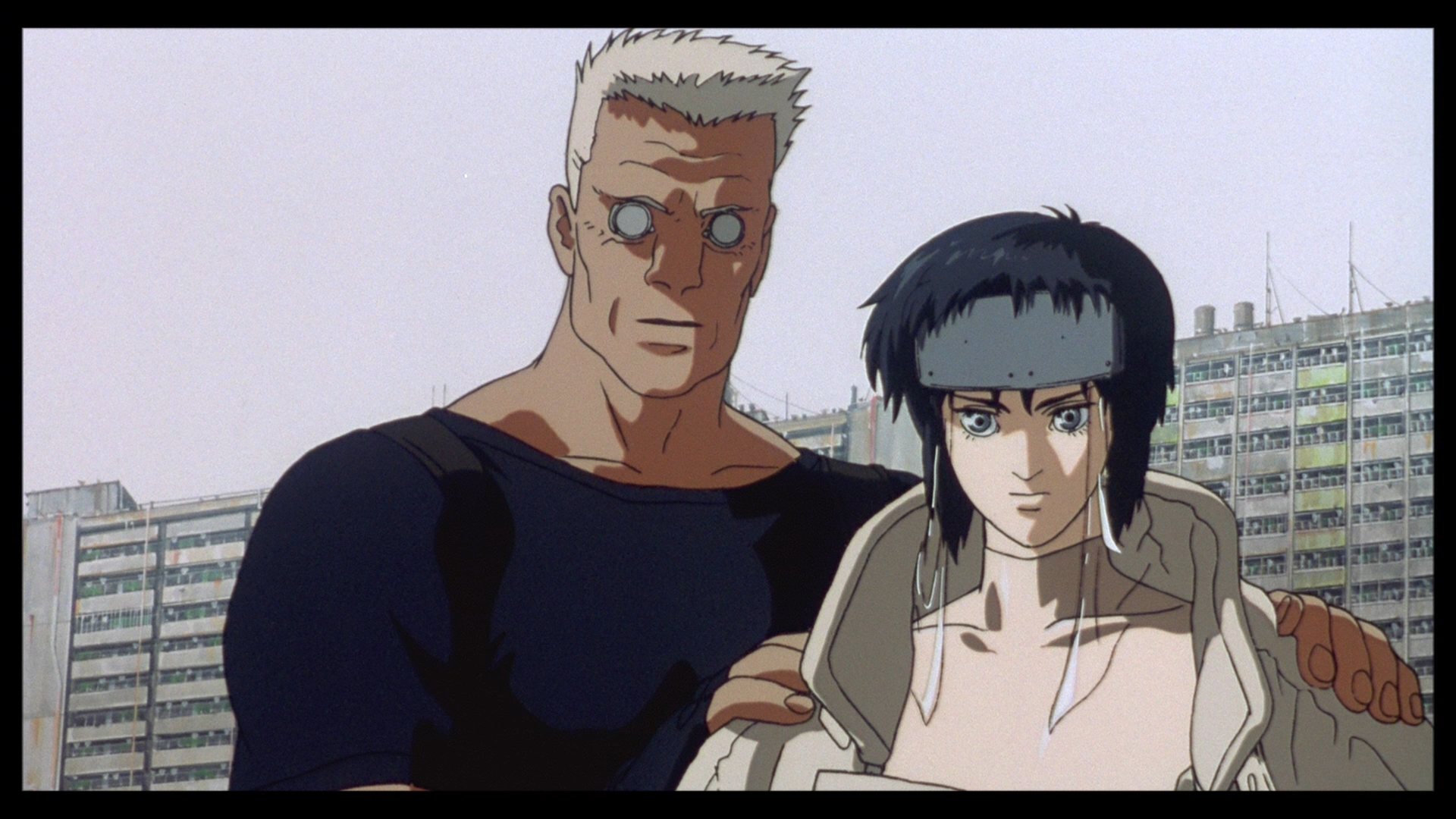 For this testing a scene from the original Ghost in The Shell 1080p Bluray(Specifically the 25th Anniversary Edition) that I obtained from personal copy using Make MKV. For comparison of video quality I used the structural similarity index (SSIM) where 1 is an identical image and 0 is an unrelated image to the reference image. SSIM scores where taken from 4 different parts of the scene which will be shown below.